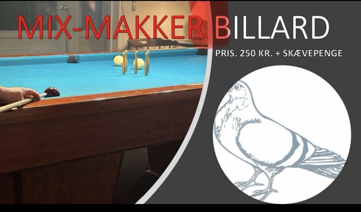 Mix-makker billard Lørdag d.10/1 kl.10 Pris 250kr og 1kr pr skæve Af de 250kr går de 125kr til mad og resten til gevinster til de 4 bedste. Der bliver serveret lidt brød ved start og varm mad ca.17.30 Max.20 par Meld til på tlf.21967993 eller i baren Mix-Makker billard 1. Hanne & Lau 2. Elisa […]