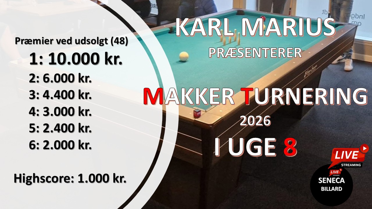 BLÅ STUE BAR - MARIELYST Marielyst Strandvej 50, Væggerløse, Marielyst Falster, DanmarkBlå Stue Team Billard afholder en hyggelig VINTER MAKKER TURNERING Max. 24 hold Indskud kr. 600,- pr hold Tilmelding til Sveske på telefon: 25476933 - sms - messenger TAK Tilmelding […]