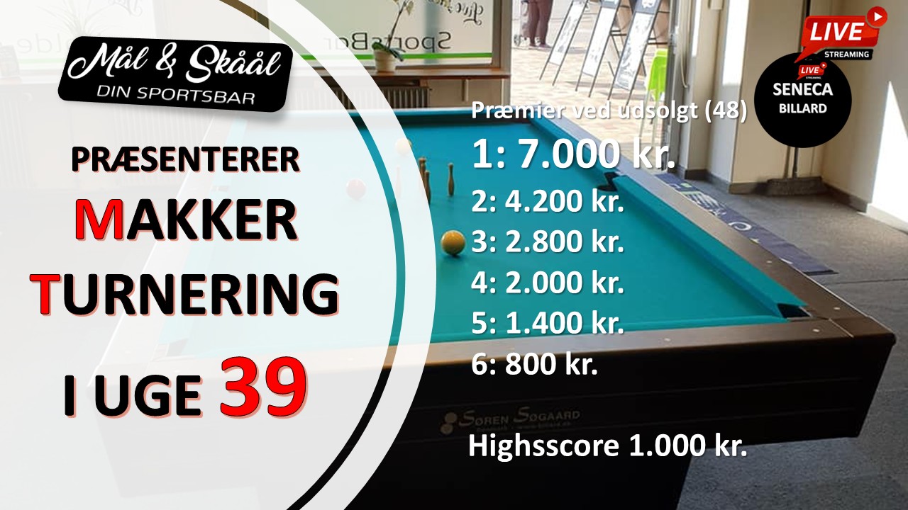 Makker uge 39 på Mål og Skåål i Odense. Med start Søndag i uge 38 (Finaledag Lørdag)