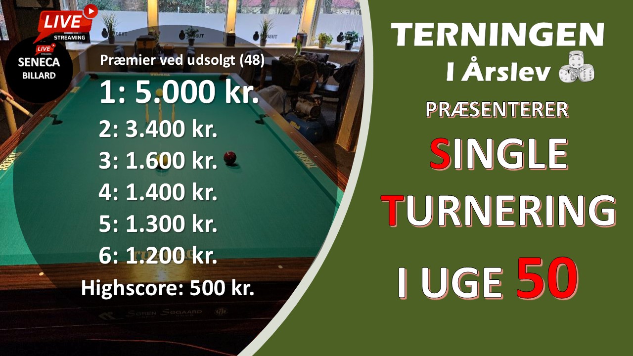 300 kr. Indledende puljer (Vælg en spilledag du ønsker at spille din indledende runde.) Søndag i uge 49 kl. 11.00 & 17.00 Mandag til Torsdag i uge 50 Kl. 17.00 Fredag i uge 50 kl. 12.00 & 18.00 Finaledag Lørdag i uge 50 Kl. 10.00 Alle bedes møde ind i god tid. 15 min før […]